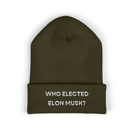 Who Elected Elon Musk? Cuffed Beanie: White Letters