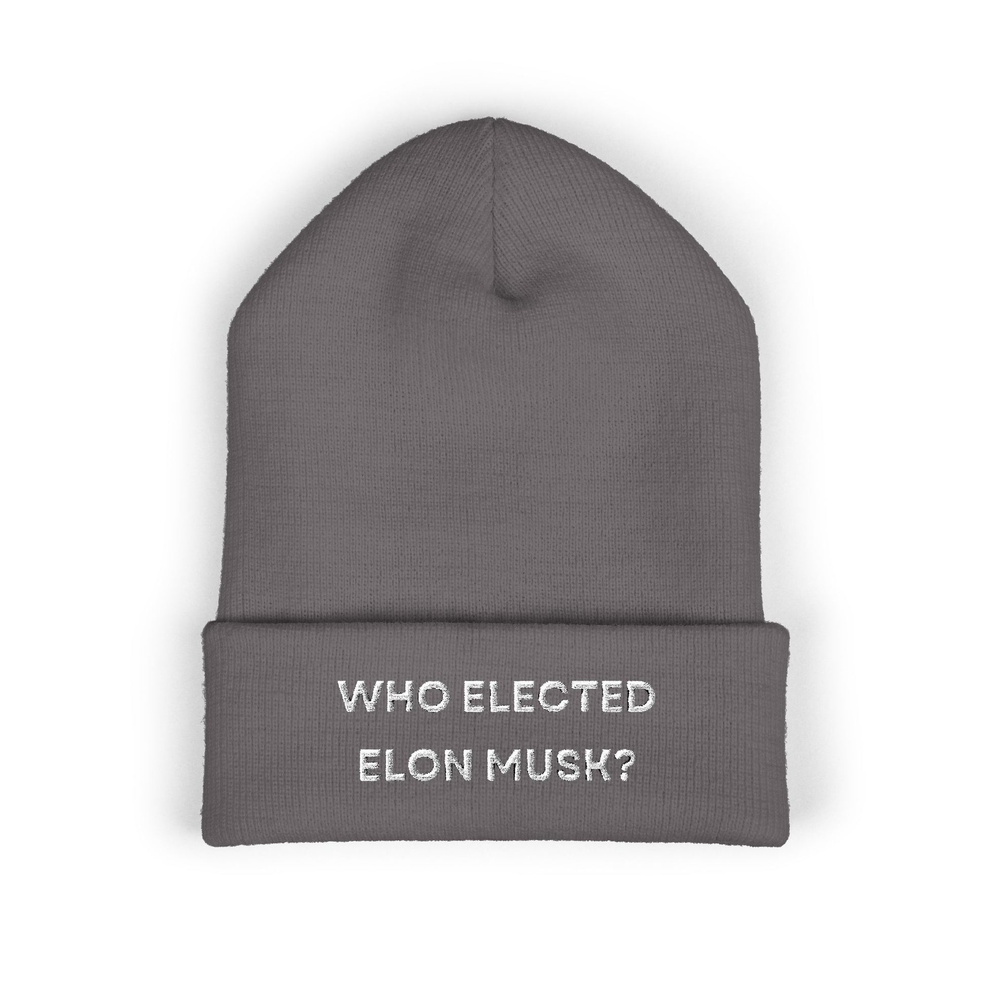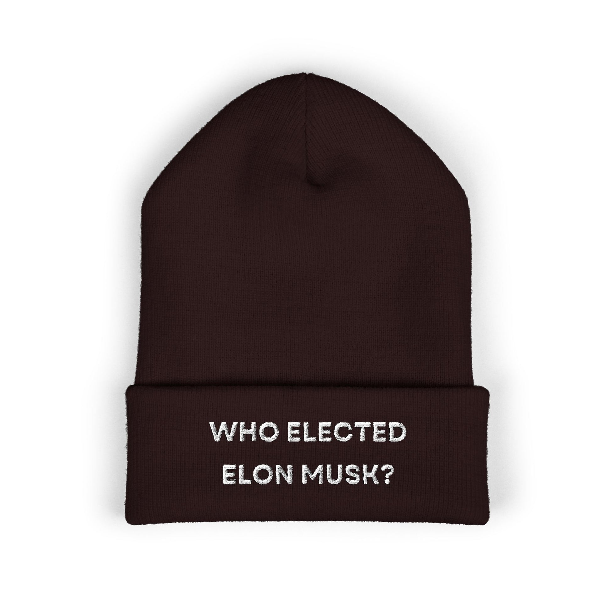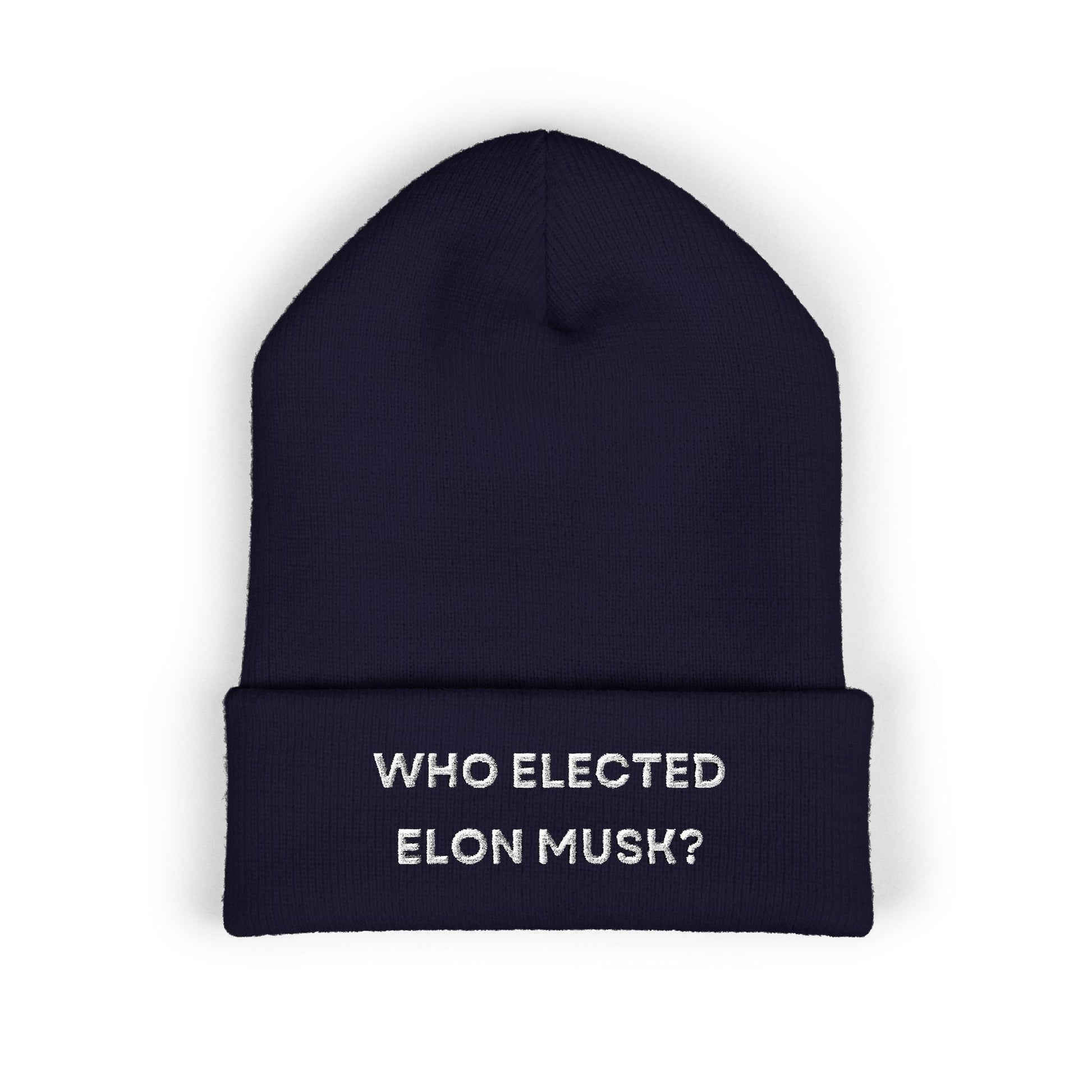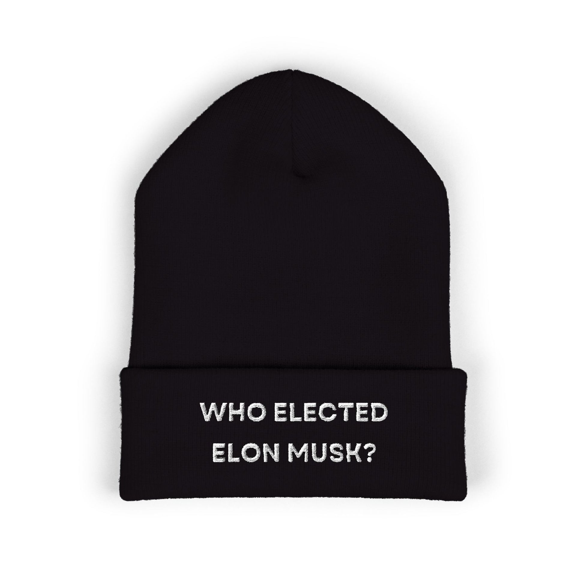 Who Elected Elon Musk? Cuffed Beanie: White Letters